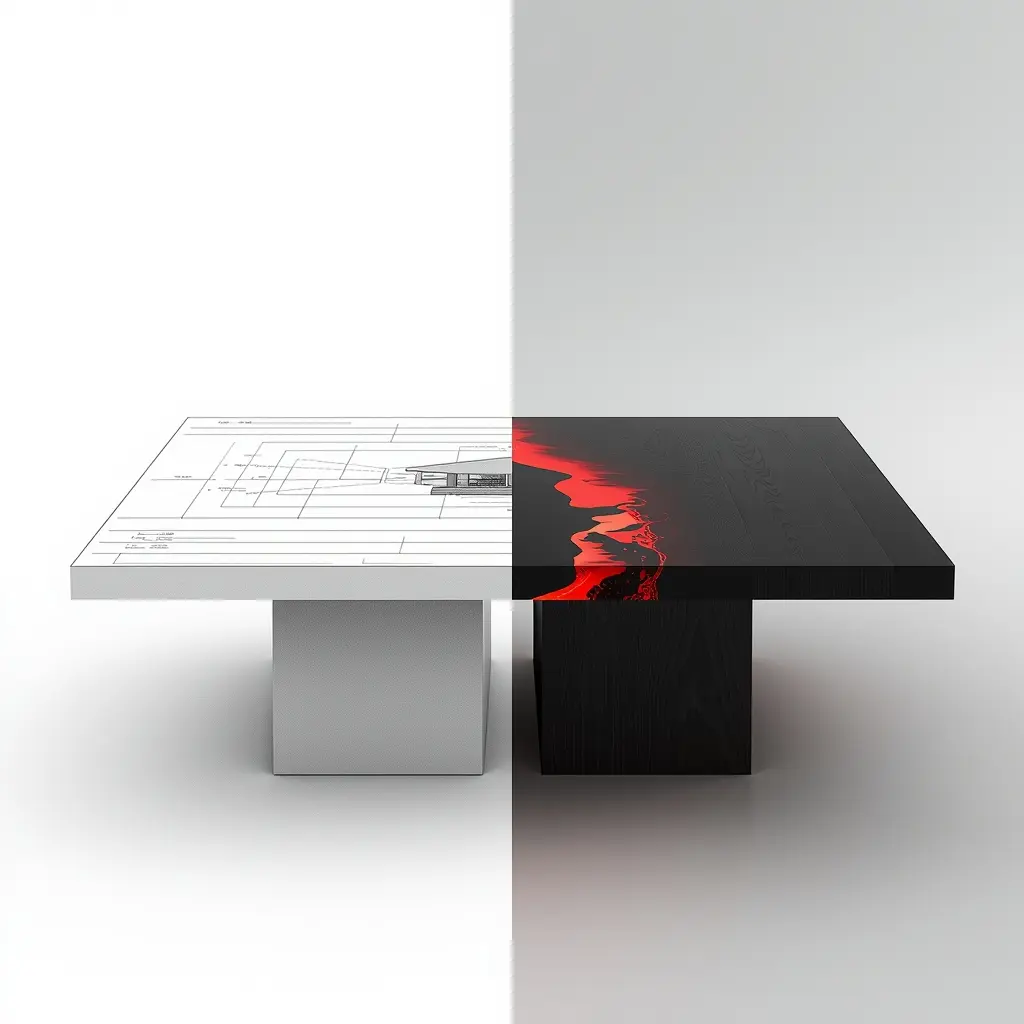 Fuziunea perfectă între tâmplăria tradițională și turnarea precisă a rășinii.